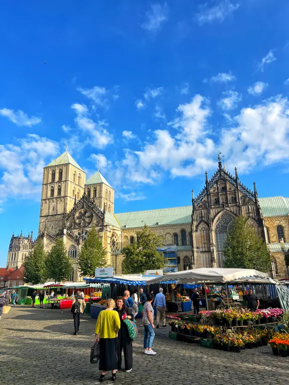 Ein Besuch auf dem Wochenmarkt vor dem historischen Dom gehört zu den Highlights in Münster. Die lebendige Atmosphäre, der Duft von frischem Brot und die Vielfalt an saisonalen Spezialitäten machen den Markt zu einem beliebten Treffpunkt für Einheimische und Gäste. Ideal für einen entspannten Bummel und kleine kulinarische Entdeckungen!